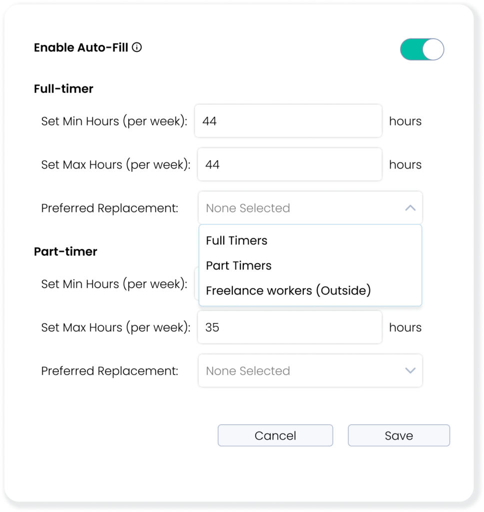 Smart Scheduling also acts as your covert assistant even when you’re not available, with its optional auto-fill function that automatically assigns your preferred replacements.