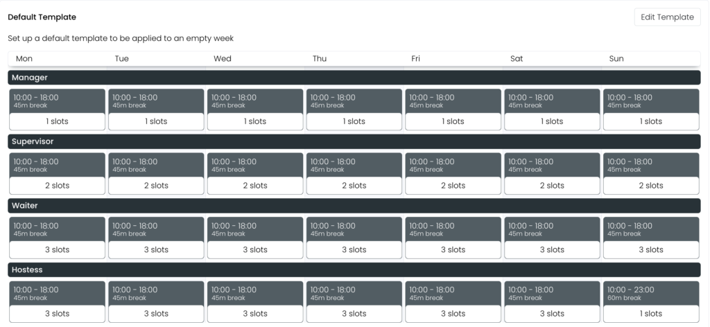 Tailor-make schedules with custom job roles according to your needs, and save them as templates to reduce both time and effort spent on recurrent scheduling.